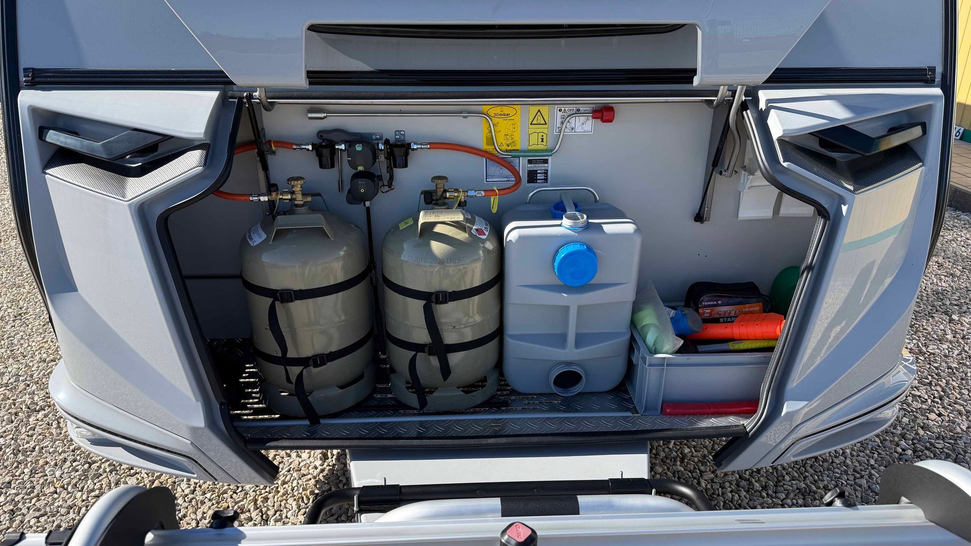 - Gas-Außensteckdose (30mBar, Grill optional erhältlich)