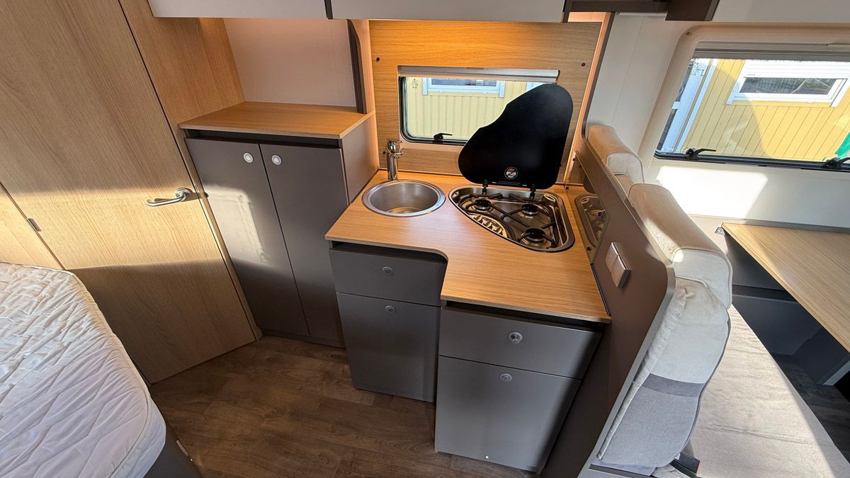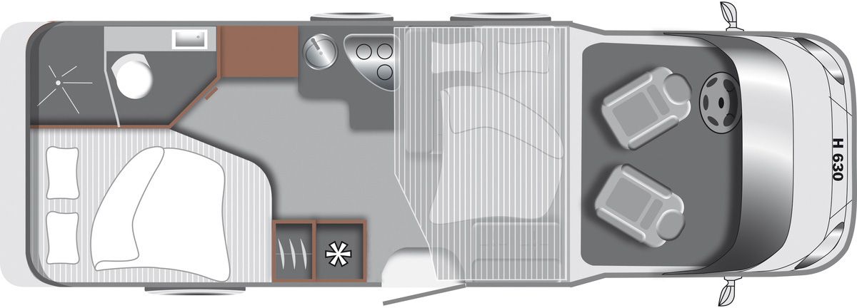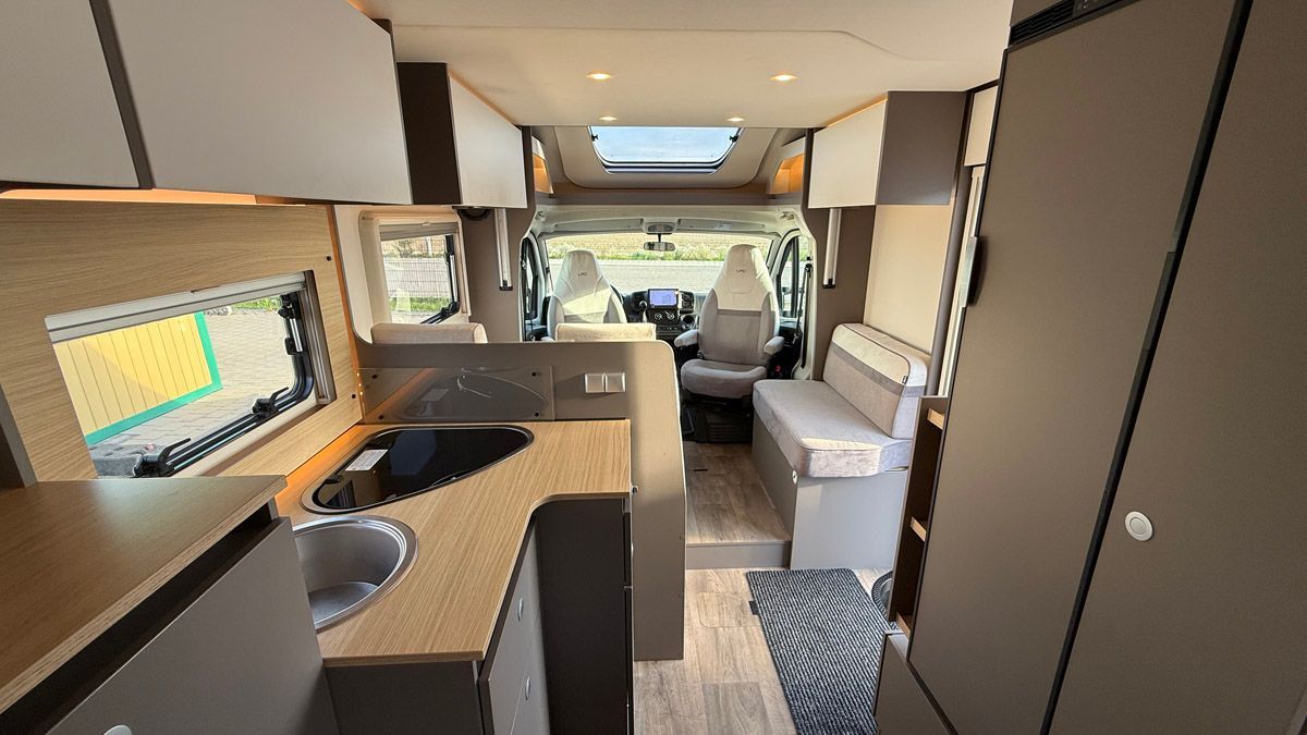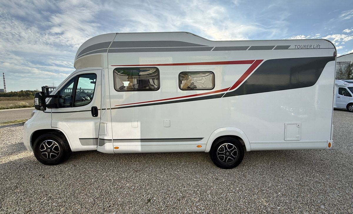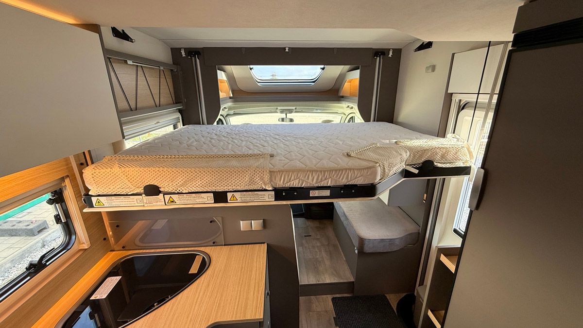 Teilintegriert, 4 Personen, Längsdoppelbett und Hubbett